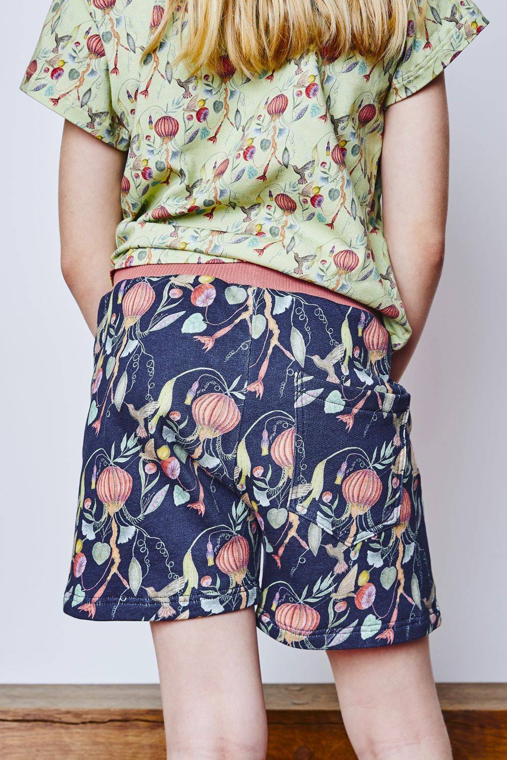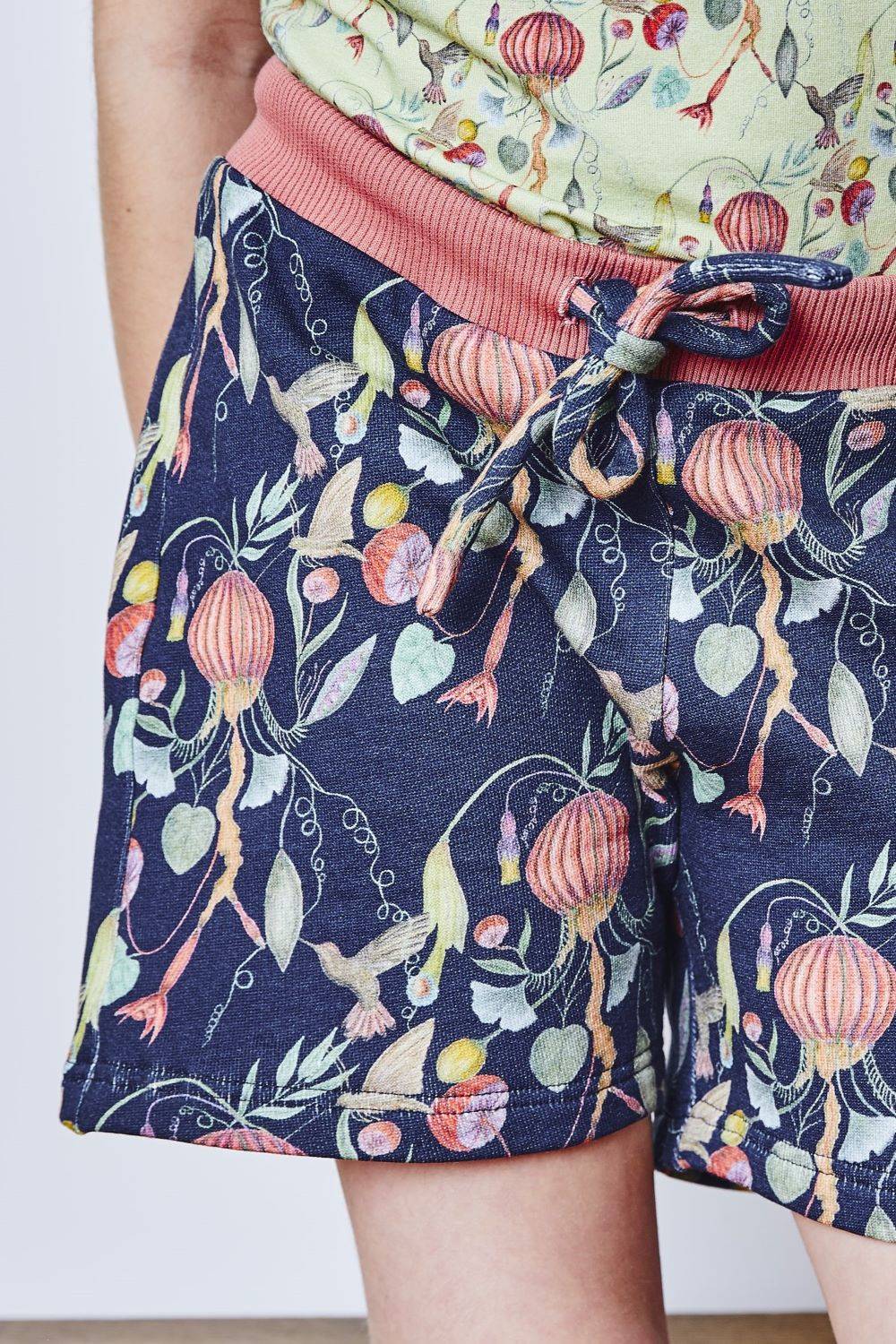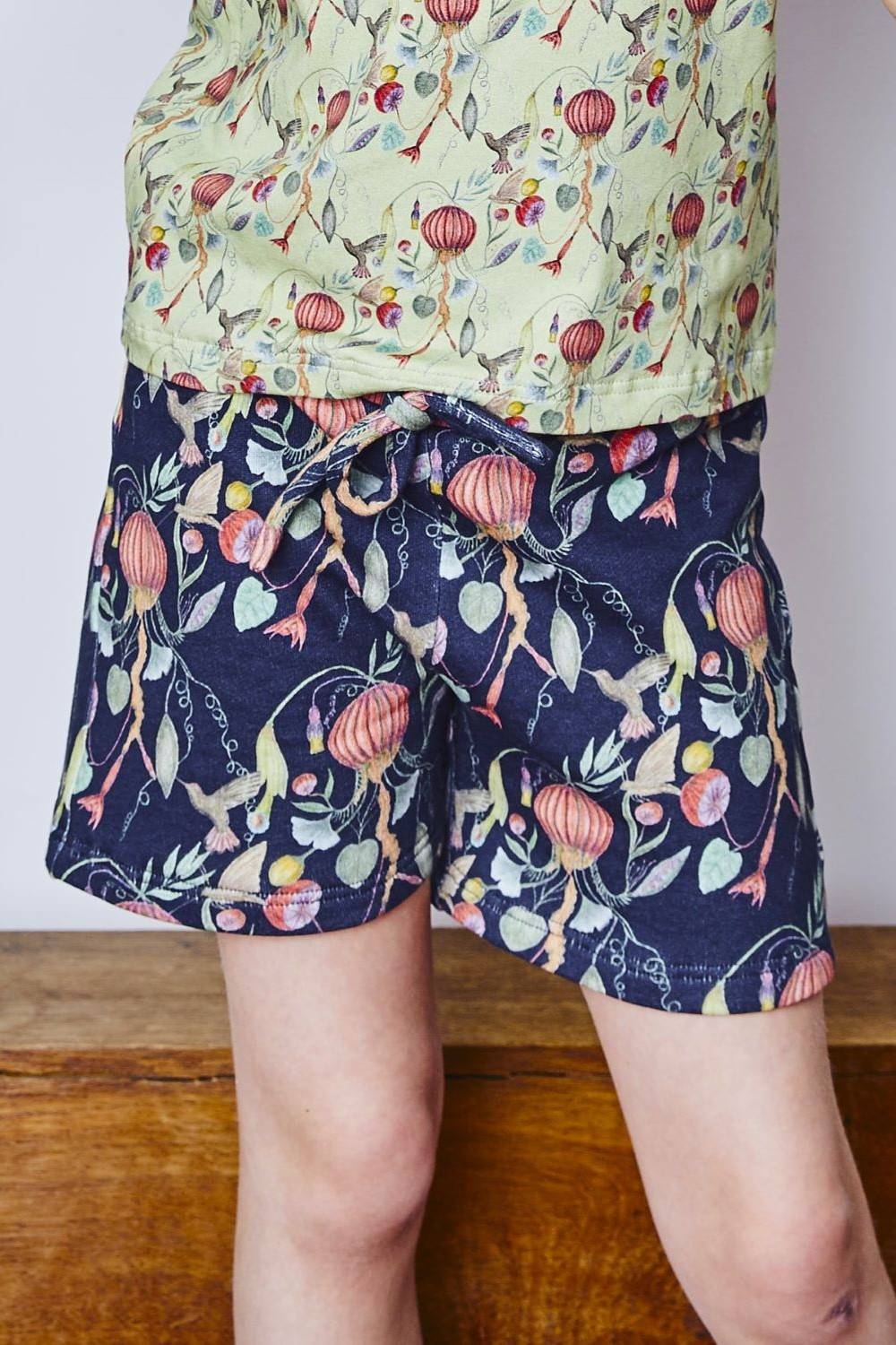 Shorts color: 'Floral Medusa' print in navy. Made from an exclusive hand drawn aesthete aquarella painting.