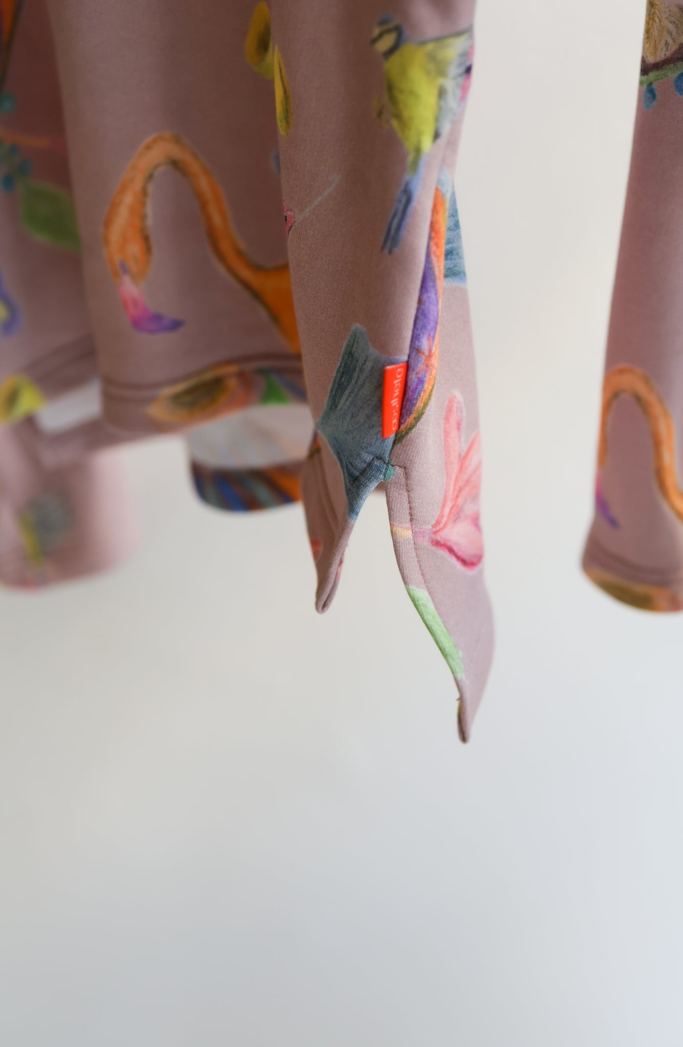Sweatshirt color: 'The Fairy Tea Party' print in old rose. Made from an exclusive hand drawn aesthete aquarella painting.