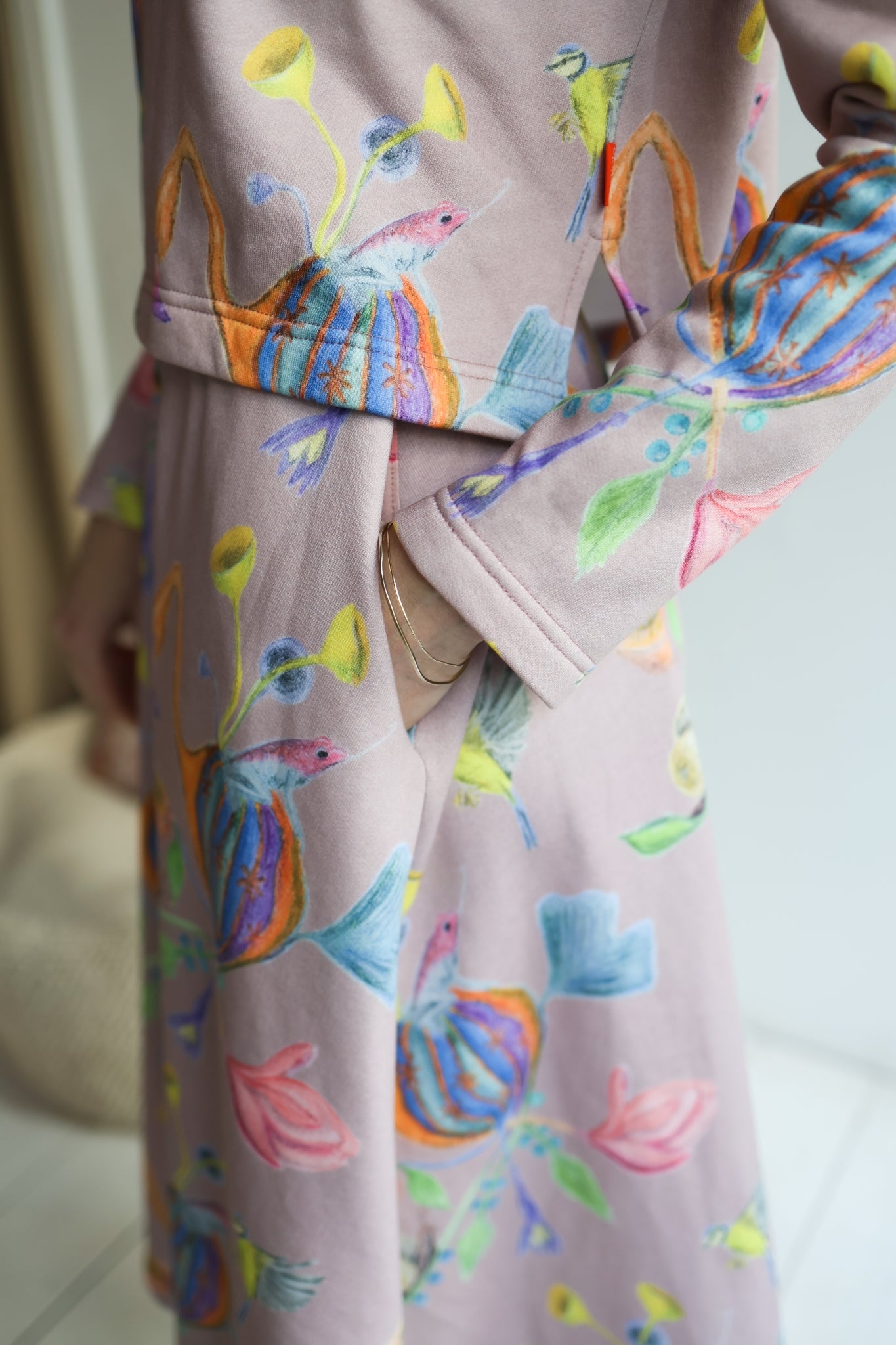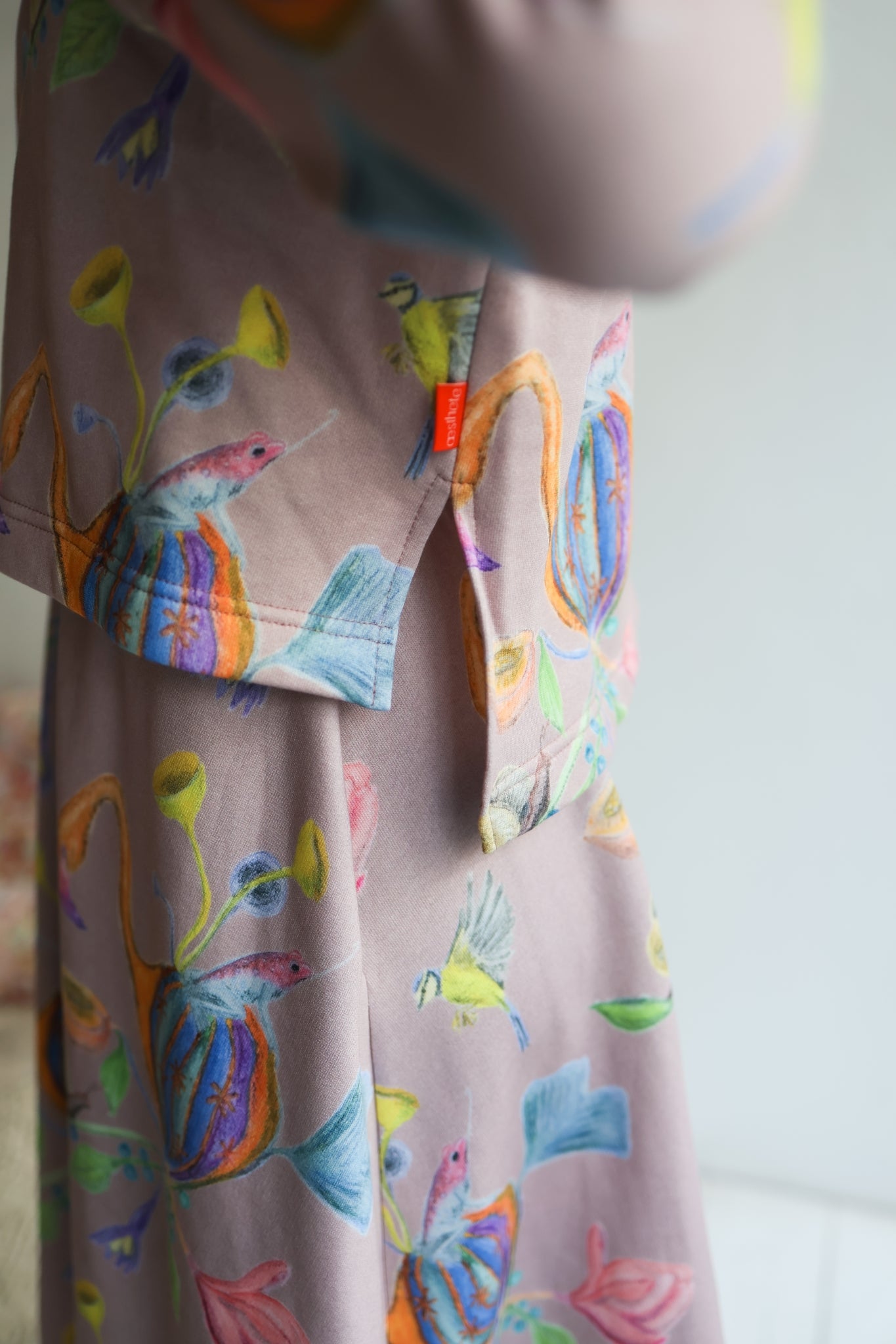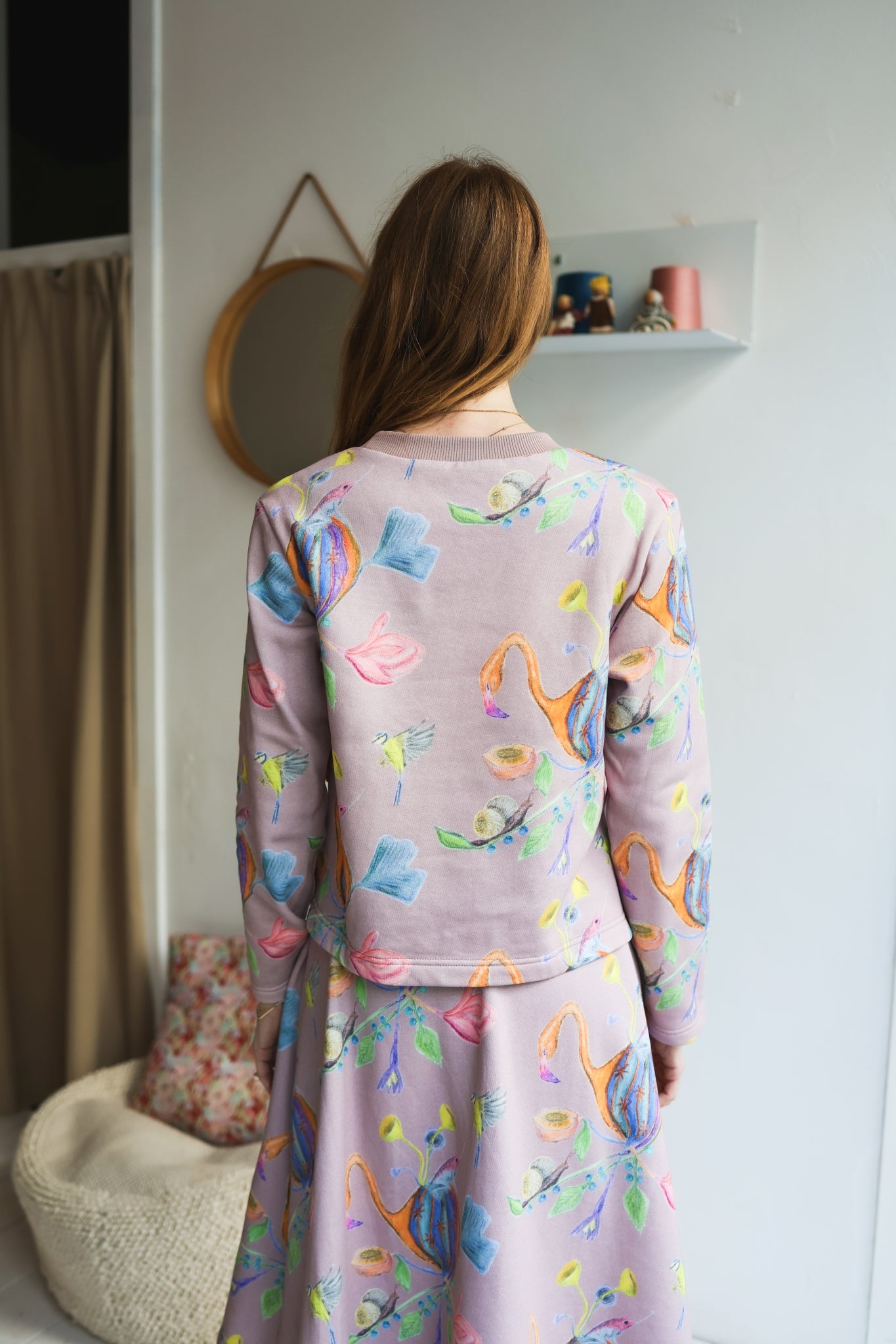 Sweatshirt color: 'The Fairy Tea Party' print in old rose. Made from an exclusive hand drawn aesthete aquarella painting.